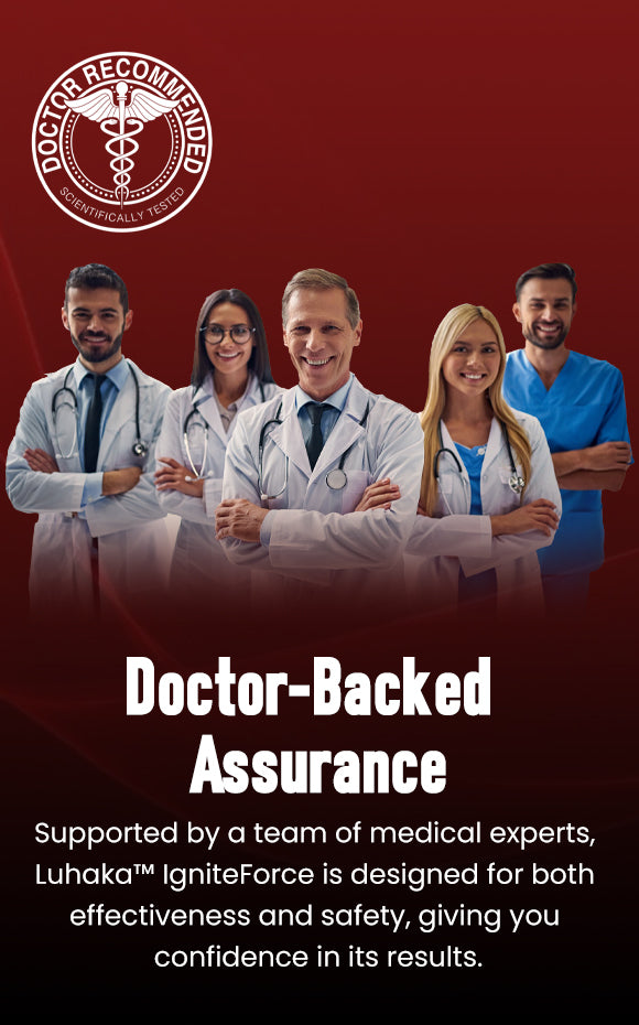 "Our clients have seen significant improvements in energy, sexual performance, and vitality with Luhaka™ IgniteForce. As urology specialists, we recommend it for men looking to enhance intimacy and regain confidence. The natural blend of Maca Root, Epimedium, and Ginseng boosts stamina, supports testosterone, and improves erections. For best results, we advise consistent use as part of a daily routine."