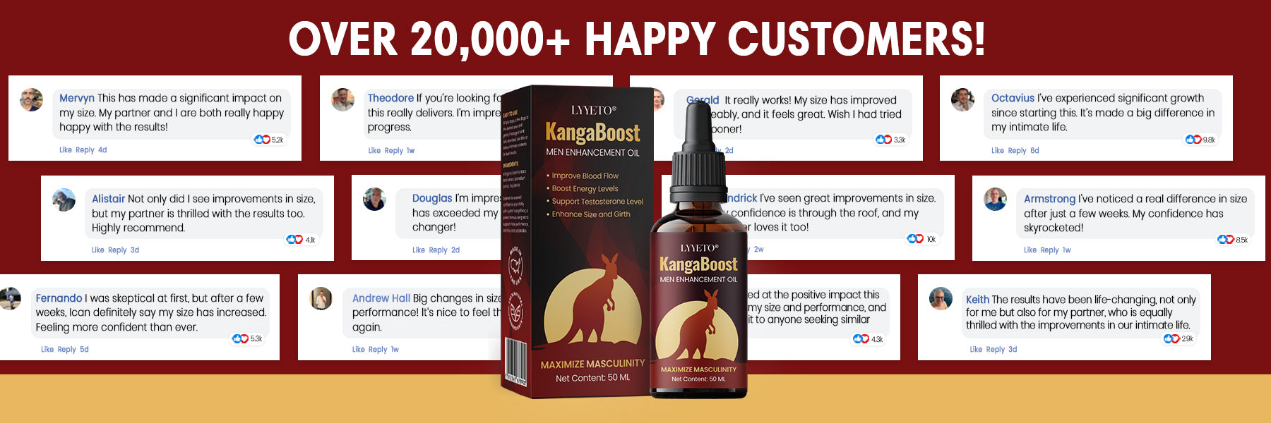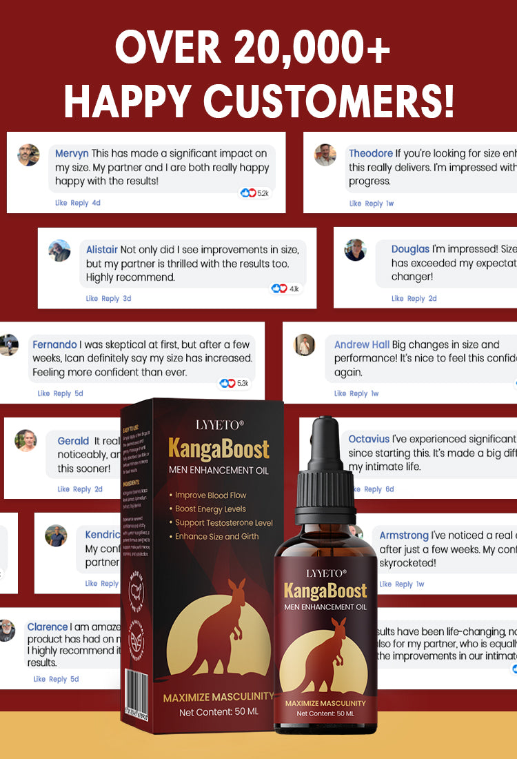 Lyyeto® KangaBoost Men Enhancement Oil addresses these issues directly. By improving circulation, enhancing libido, and supporting healthy testosterone levels, KangaBoost empowers men to overcome these obstacles and reclaim their sexual health. The result is not just a better experience for you, but also for your partner, ensuring deeper intimacy and greater satisfaction.